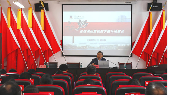 為深入學習貫徹習近平總書記在學校思想政治理論課教師座談會上的重要講話精神和關于思政課建設的重要指示精神,全面貫徹黨的教育方針,落實立德樹人根本任務,拓展“大思政課”育人格局,4月9日下午,我校馬克思主義學院舉辦“琢玉論壇”學術活動,特邀全國高校思政課名師工作室(安徽師范大學)領銜專家路丙輝教授、安徽師范大學馬克思主義學院張濤副教授作專題講座。馬克思主義學院領導班子及全體教師參加。