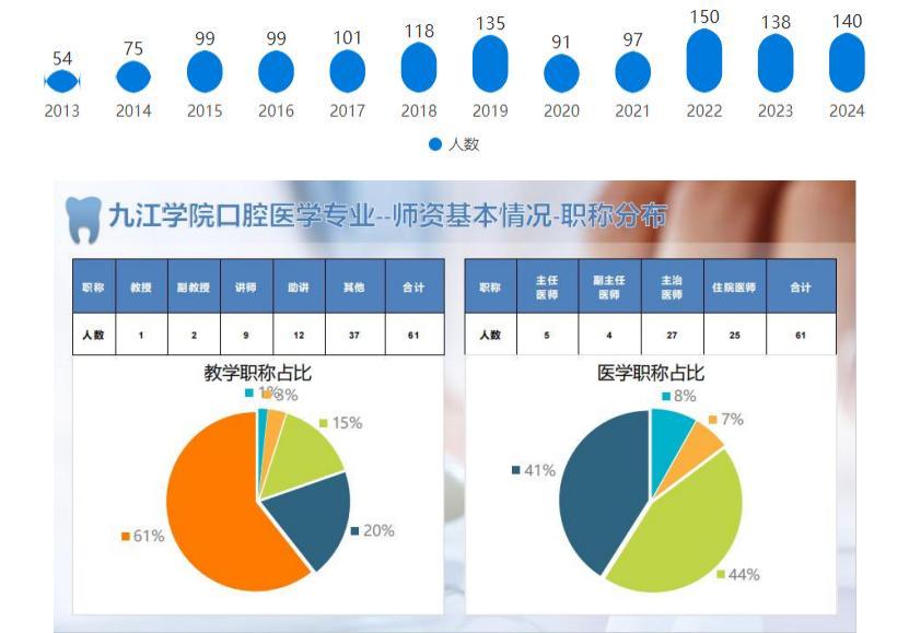 2013-2019 年度,學院共培養口腔醫學本科畢業生 681 名;2020-2025 年度, 口腔醫學本科在校生 616 名。