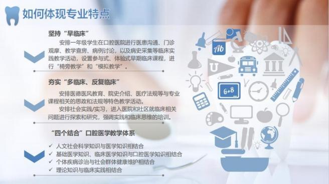 口腔醫學院緊密結合社會需求,積極推進應用型轉型發展,努力培養適應社會需求的高素質應用型口腔醫學人才。