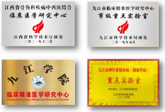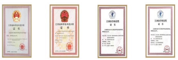 2019 年以來, 醫院共有參編 5 個行業指南和專家共識;共發表 論文 1146 余篇,其中 SCI 105 篇,中國科學院一區 6 篇,最高影響因 子達到 13.437;獲江西省科技進步獎 2 項,江西省醫學科技獎 1項;國家自然科學基金立項 12 項,科技部國家級課題 1 項;省 自然科學基金立項 11 項;獲專利授權 103 項,其中發明專利 3 項。 國家級繼續醫學教育項目 12 項。科學研究方向主要有腦出 血、糖尿病心肌病、糖尿病腎病、再生障礙性貧血、非小細胞肺 癌及肺轉移癌等領域的基礎與臨床機制研究。
