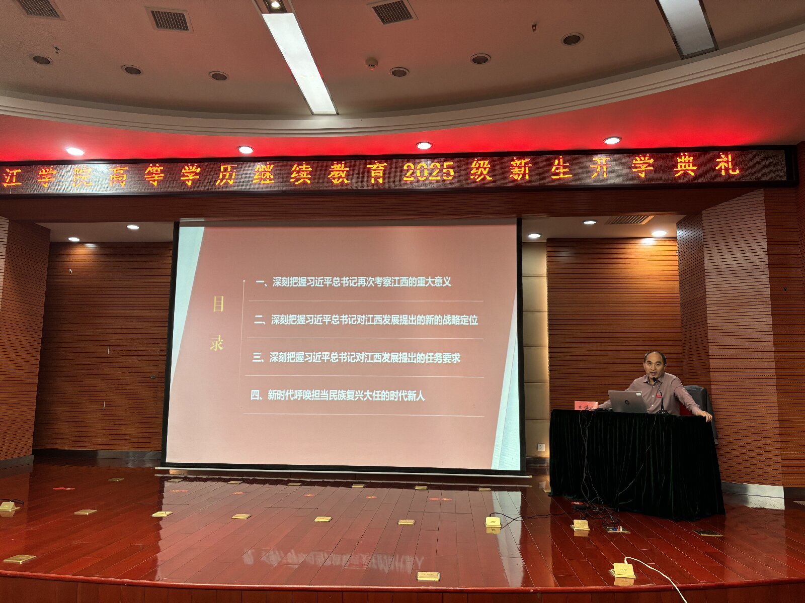 4月19日上午,九江學(xué)院高等學(xué)歷繼續(xù)教育2025級(jí)新生開學(xué)典禮暨開學(xué)第一課在學(xué)校丹楓園舉行。本次開學(xué)典禮采取網(wǎng)絡(luò)視頻會(huì)議方式進(jìn)行,在逸夫圖書館報(bào)告廳設(shè)主會(huì)場,各校外教學(xué)點(diǎn)設(shè)分會(huì)場。校黨委委員、副校長查振華出席典禮并講話。