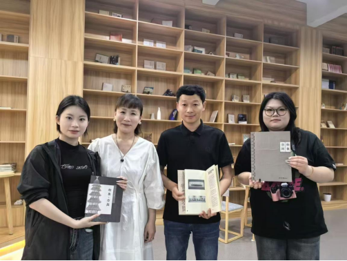 此次分享的手工圖書中有三本為譚丹武老師的藝術設計作品集制作的圖書,呈現了三種不同的表現,還有為劉書樵女士的《九江味道》及詩配畫作品《一邊是生活,一邊是愛情》設計的書籍。兩位作者對同學們的設計大為贊賞,興奮地和設計者合影留念,并計劃出版圖書。