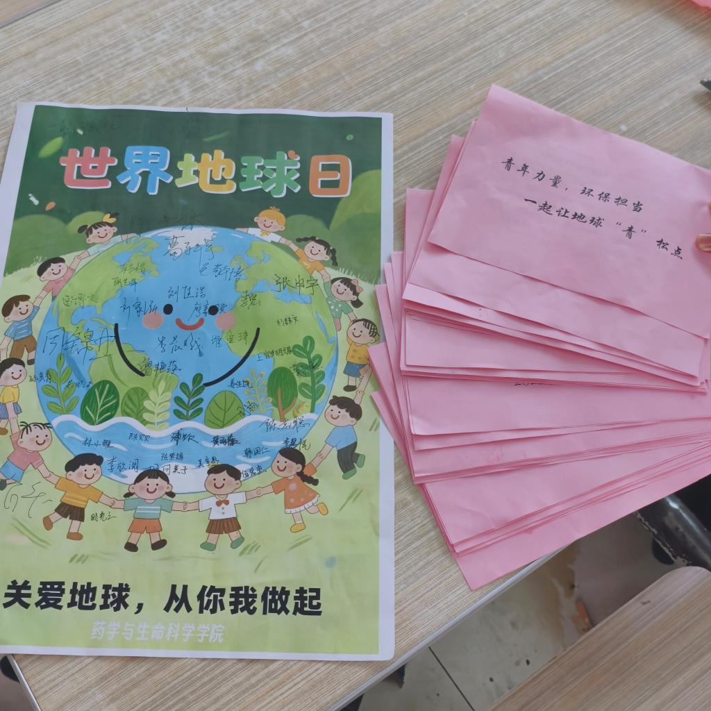 藥學與生命科學學院在主校區和紫薇園校區同步開展了“守護藍色星球,共筑綠色未來”主題宣傳活動。活動通過海報講解、賀卡互動等形式,吸引了眾多同學參與。活動現場,同學們在海報上簽字,許下了環保承諾,并在呼吁卡上寫下對地球的關愛之情,字字句句都飽含深情。