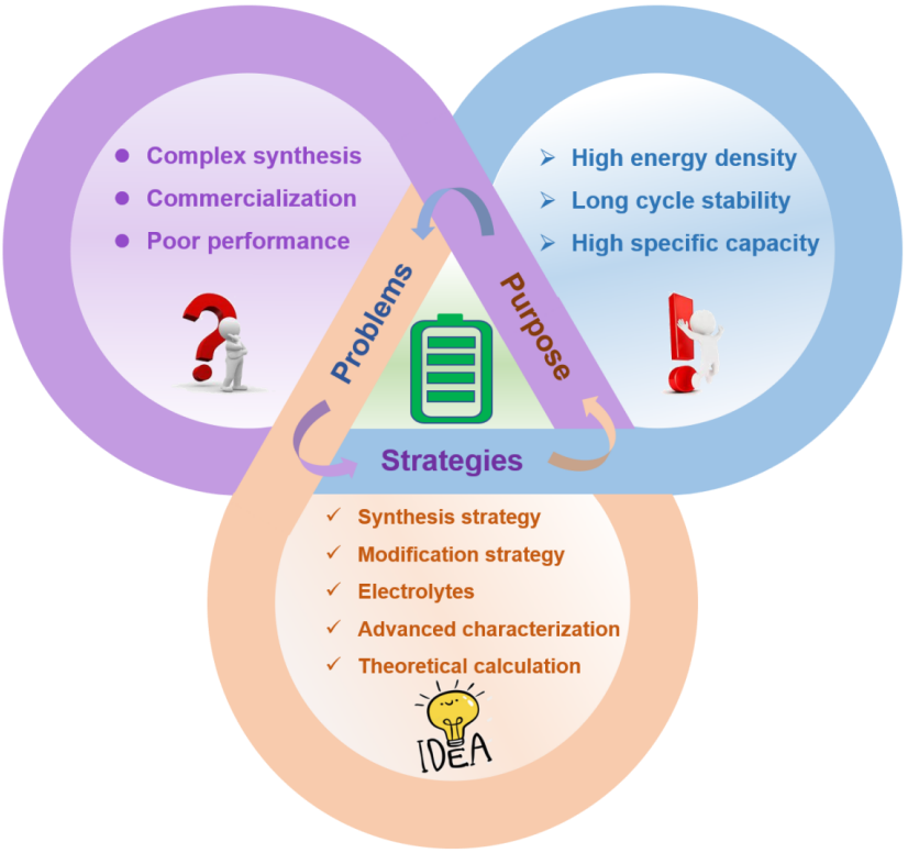 另外,本文還重點介紹了幾種改性策略,包括離子插層、分子插層、復合材料和缺陷工程。離子插層可以穩定正極結構并改善其動力學,而分子插層可以提高整體導電性并進一步穩定晶體結構。復合材料的使用有助于防止正極結構的坍塌,從而提高導電性和電化學性能。缺陷工程在增強二氧化釩基正極的結構穩定性和電化學性能方面起著至關重要的作用。通過引入或控制缺陷,可以改變材料的晶體結構來改善其性能。此外,元素摻雜可以通過調節能帶結構和提高離子擴散速率來優化電化學性能,而這可以通過將外來元素摻入二氧化釩晶格來實現。二氧化釩作為AZIBs的正極材料,需要從多個角度進行全面的研究和創新,才能實現商業化并進一步拓展其應用潛力。本文還系統的介紹了未來需要探索的關鍵領域,包括合成方法的創新、優化策略的改進、電解質的改進以及先進表征技術的開發。