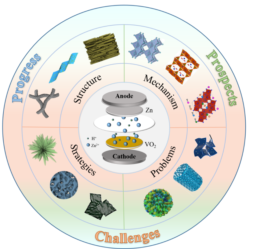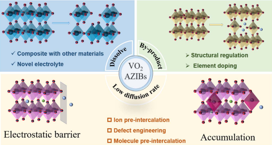 二氧化釩因其獨特的物理化學性質,作為鋅離子電池(AZIBs)的正極材料已被廣泛研究,并展現出巨大的應用潛力。盡管二氧化釩具有諸多優勢,但它也面臨著與其他金屬氧化物正極材料類似的挑戰,例如結構穩定性差、循環性能下降以及活性位點的損失,這些因素共同限制了其在AZIB中的廣泛應用。然而,對其研究進展、挑戰和商業前景的全面系統分析仍然有限。本文重點闡述了二氧化釩晶體結構與鋅離子儲能性能之間的構效關系,深入探討了其儲能機制,并強調了其在能量轉換和存儲中的關鍵作用。