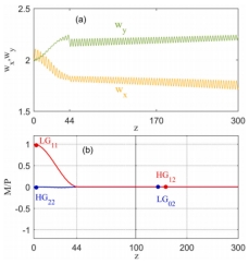 3.利用旋轉橢圓拋物勢阱,實現了拉蓋爾-高斯和埃爾米-高斯光束在傳輸過程中可控相互轉換,及其伴隨軌道角動量的控制。