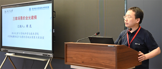 在學術報告環節,周昆教授作了“三維場景的全光建模”的特邀報告,全面回顧了全光學建模的進展,分析前沿創新,并提供對該領域未來發展方向的見解。