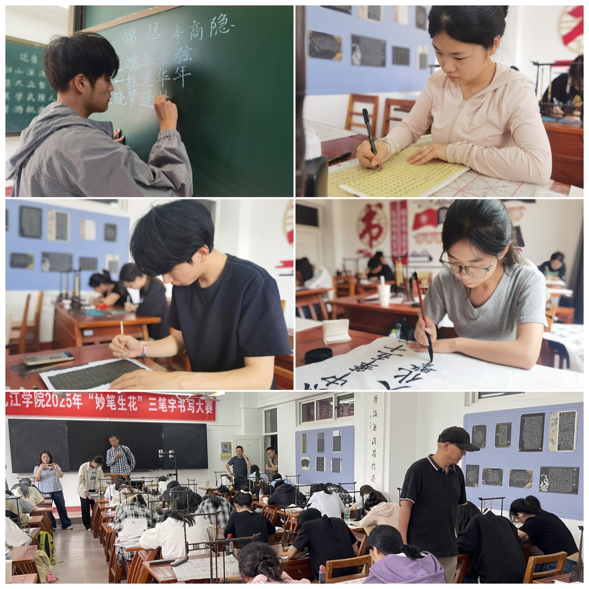 5月24日上午,由國家語言文字推廣基地(九江學院)指導、教務處主辦、教育學院承辦的九江學院2025年“妙筆生花”三筆字書寫大賽在競知樓三筆字實訓室圓滿落幕。大賽面向全體在校學生,分為初賽和決賽兩階段,歷時一個月,共收到硬筆、毛筆、粉筆三類作品近200件。此次大賽不僅為優秀學子搭建了展示平臺,更通過以賽促學的方式推動了校園文化建設。