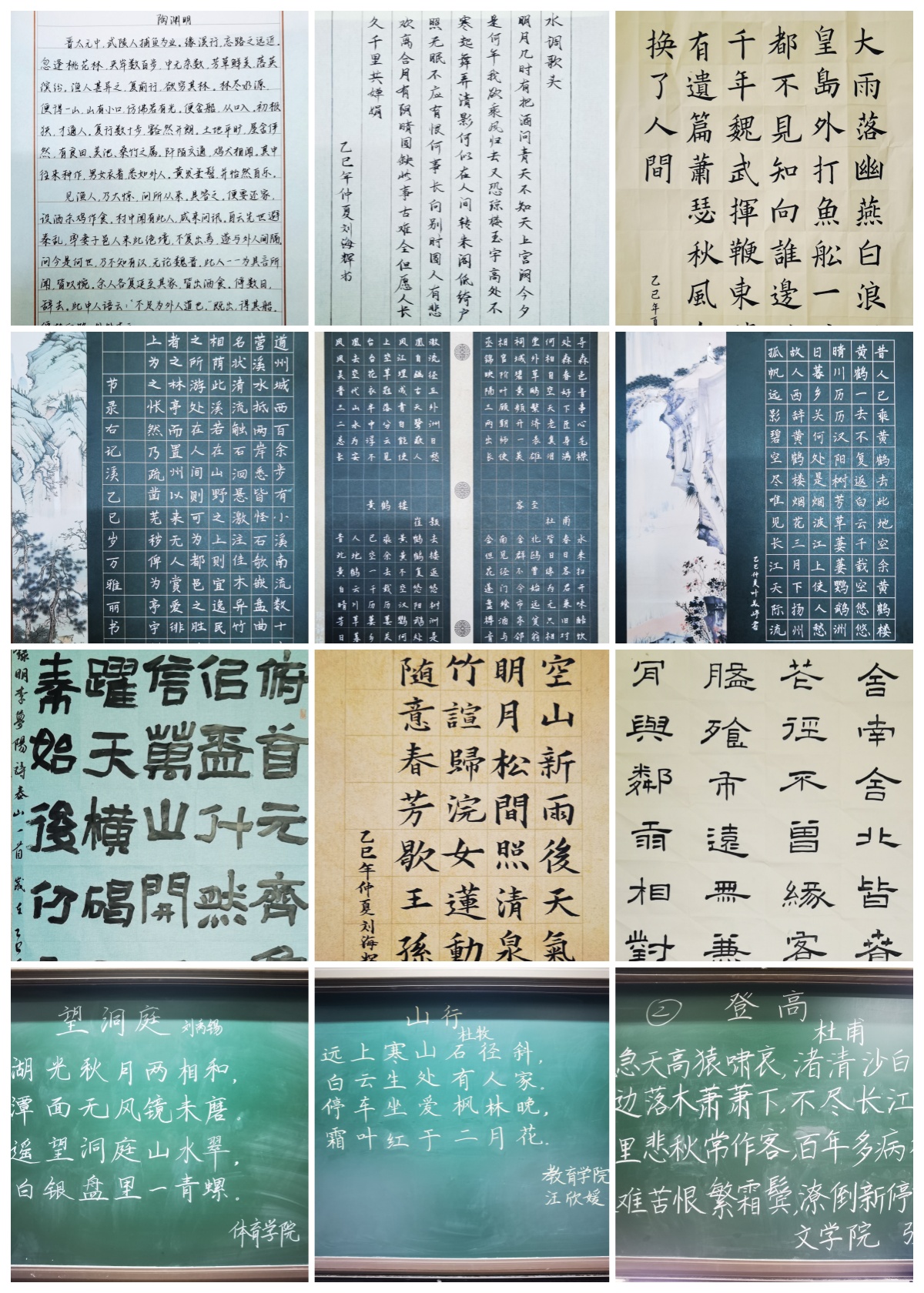 教務處充分發揮統籌協調作用,聯合教育學院成立比賽工作組,制定科學嚴謹的賽事方案。初賽階段,組委會廣泛動員,并設置專人對接作品提交與答疑,保障流程高效有序。教育學院依托專業優勢,組建由書法專家、語言文字學者構成的評審團,依據字體規范性、藝術性、創意性等維度細化評分標準。針對硬筆、毛筆、粉筆不同組別,分別設置楷書行書規范、多字體創新、版面設計等特色要求,既尊重傳統技法,又鼓勵個性表達。