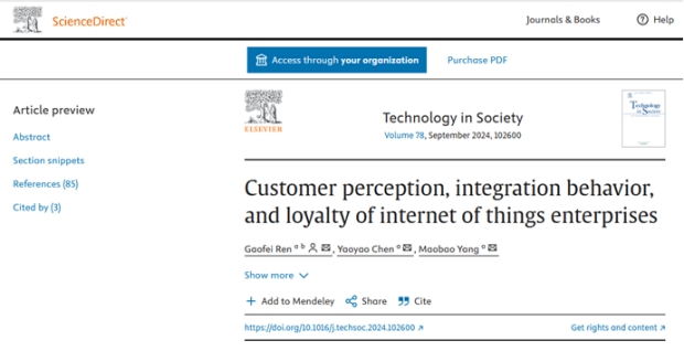 本論文成果所發表的期刊《Technology in Society》為中國科學院分區表(2024版)SSCI一區TOP期刊,社會科學、跨領域大類及小類學科雙一區期刊。WOS期刊JCI指標學科分區(2023-2024版)Social Issues及Social Sciences,Interdisciplinary學科排名均為第1,Cite Score 17.90,2023-2024年期刊影響因子10.1。該成果自2024年5月24線上發表,2024年9月9日訂閱版刊發以來受到學界同行關注。