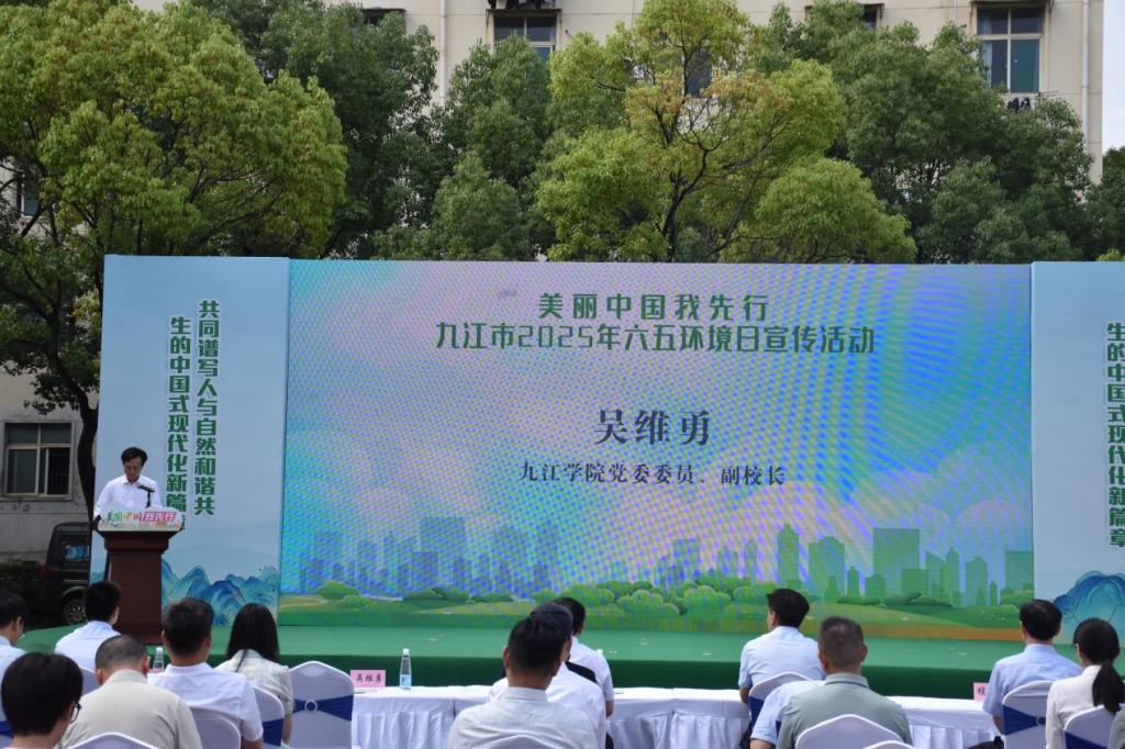 6月3日,九江市2025年六五環境日主題宣傳活動在九江學院啟動。活動由我校資源環境學院聯合市生態環境局、市委宣傳部、共青團九江市委、市機關事務管理局、九江市融媒體中心共同主辦,主題為“美麗中國我先行”,旨在推動全社會共建生態文明。市人大常委會副主任羅百奚、副市長容長貴、市政協副主席程向陽及九江學院副校長吳維勇出席活動。