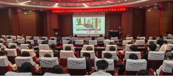 在全國上下深入學習貫徹習近平新時代中國特色社會主義思想之際,為唱響時代主旋律、弘揚文化正能量,6月6日,九江市委宣傳部、市文聯與九江學院聯合邀請解放軍藝術學院原副院長朱向前教授做客九江學院“弘文講堂”。在逸夫圖書館學術報告廳,市文聯班子成員、市民讀者及文學、書法愛好者與九江學院200名師生共同聆聽了朱向前教授題為《文化巨人毛澤東》的專題講座。
