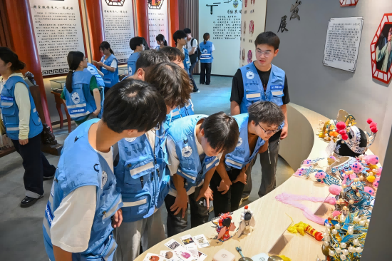 在青陽腔陳列館內,一件件珍藏的戲服、道具和戲譜靜靜訴說著這項國家級非物質文化遺產的悠久歷史。講解員詳細介紹了青陽腔的起源與發展——明代嘉靖年間,江西弋陽腔傳入安徽青陽,與當地聲腔、音樂和方言融合,逐漸形成了獨具特色的青陽腔。通過珍貴展品與詳實講解,同學們深入了解了這一傳統戲曲藝術的演變軌跡。