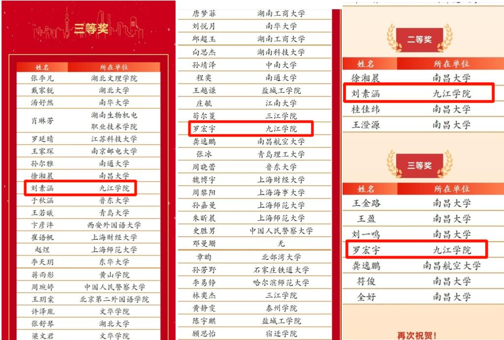 此次賽事成果充分展現了九江學院跨文化教育的教學成效。學校將繼續加強跨文化教育的課程建設與實踐教學,為培養具有國際視野和跨文化溝通能力的高素質人才而不懈努力。