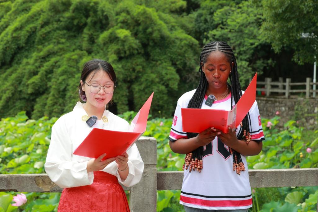 活動(dòng)在古樸的庭院中拉開帷幕。九江學(xué)院師生與本地朗誦者身著傳統(tǒng)服飾,以標(biāo)準(zhǔn)流暢的普通話演繹《歸園田居》《飲酒》等陶淵明代表作。當(dāng)加納留學(xué)生Janice用清亮的嗓音誦出“少無適俗韻,性本愛丘山”時(shí),現(xiàn)場(chǎng)響起熱烈掌聲。這位非洲姑娘字正腔圓的發(fā)音與真摯的情感表達(dá),成為中華詩詞跨越國(guó)界、聯(lián)結(jié)人心的生動(dòng)注腳。