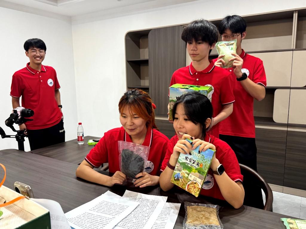 針對金竹畬鄉(xiāng)農(nóng)產(chǎn)品銷路困境,實踐隊深入金竹畬鄉(xiāng)生態(tài)農(nóng)業(yè)公司調(diào)研,運用專業(yè)所學開展直播助農(nóng),以數(shù)字化手段拓寬特色產(chǎn)品銷路。隊員高艷娜在稻田勞作后表示:“我們來到了水稻梯田,親身下水體驗了水稻種植與稻花魚養(yǎng)殖,我們感受到了偏遠山區(qū)生活的不易,身為新時代大學生,我們很希望為畬村地方經(jīng)濟發(fā)展獻上我們的綿薄之力,也希望能在助農(nóng)的過程中將營銷課程專業(yè)知識學以致用。”