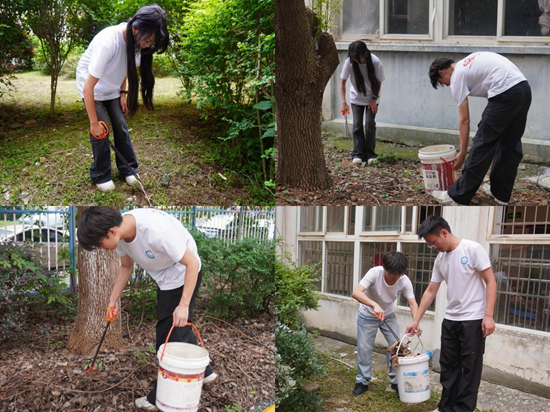 活動(dòng)最后,隊(duì)員們化身“環(huán)境守護(hù)者”,拿起掃帚、鐵鉗等工具,細(xì)致清掃庭院落葉與塑料。他們額頭沁出細(xì)密的汗珠,卻始終專注而認(rèn)真。