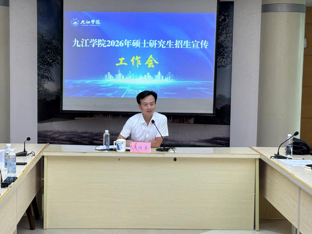7月2日,我校召開2026年碩士研究生招生宣傳工作部署會,全面啟動新一年度的研招宣傳工作。校黨委委員、副校長吳維勇出席會議并講話。宣傳部、發展規劃與研究生處及相關二級學院負責人參加會議。會議旨在統籌安排2026年碩士研究生招生宣傳工作,確保研究生招生工作有序推進,進一步提升生源質量,吸引更多優秀學子報考九江學院。