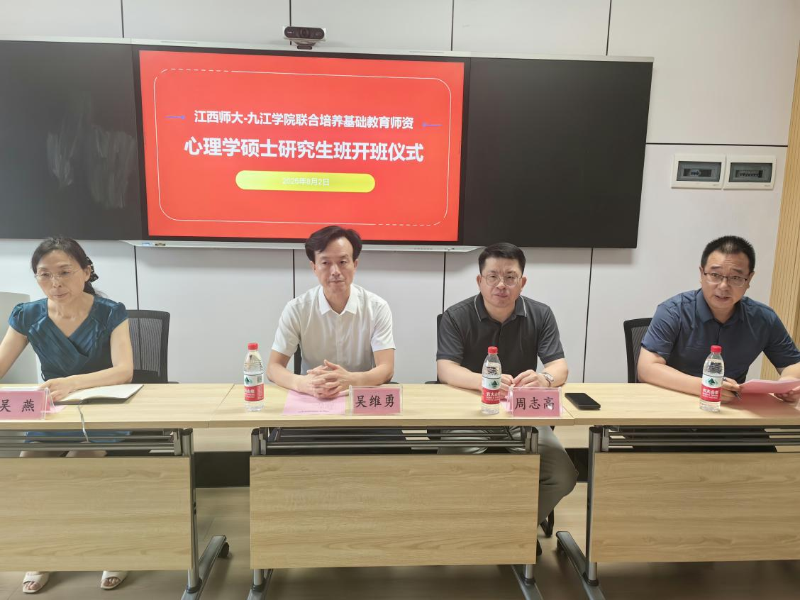 8月2日上午,江西師范大學與九江學院聯合培養基礎教育師資心理學碩士研究生班開班儀式在九江學院競知樓209智慧教室舉行。校黨委委員、副校長吳維勇出席儀式并講話,發展規劃與研究生處、教育學院負責人,全體授課教師,班主任以及首屆聯合培養班全體學員齊聚一堂,共同見證這一時刻。