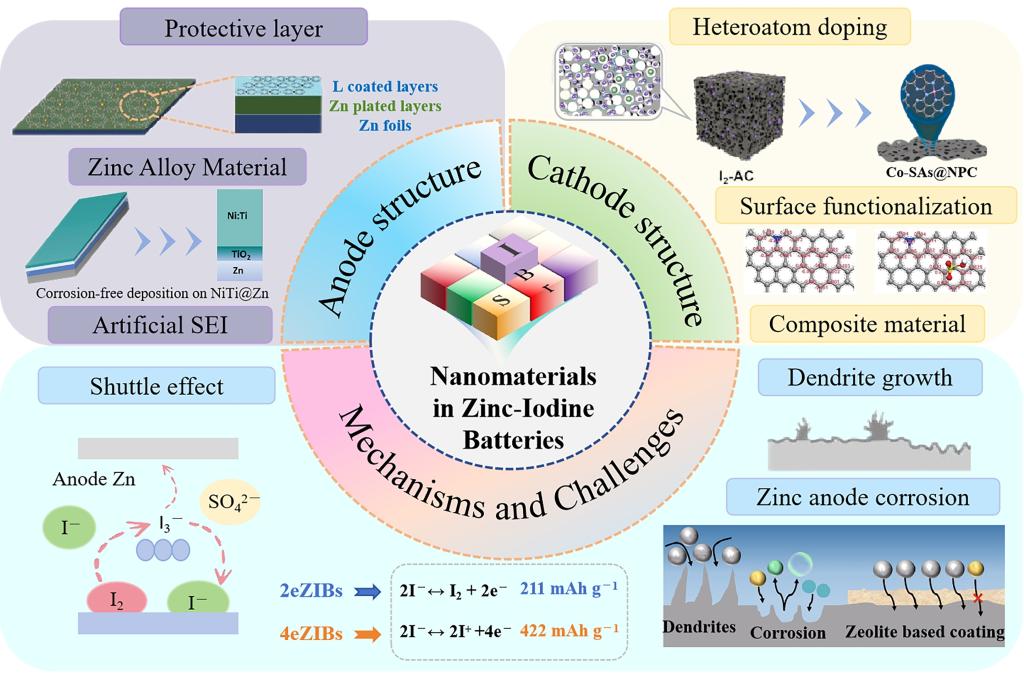 水系鋅碘電池(AZIB)因其低成本、高安全性、多種電子轉(zhuǎn)移特性以及鋅金屬的高理論容量(820 mAh g?1)而成為新型儲(chǔ)能系統(tǒng)的重要候選者。然而,AZIB的實(shí)際應(yīng)用仍然面臨重大挑戰(zhàn),主要包括碘的緩慢氧化還原動(dòng)力學(xué)和多碘化物的穿梭效應(yīng)。穿梭效應(yīng)不僅會(huì)降低正極活性物質(zhì)的含量,還會(huì)穿梭至負(fù)極與鋅負(fù)極發(fā)生劇烈的自放電反應(yīng),導(dǎo)致鋅負(fù)極腐蝕以及表面鈍化等副反應(yīng)。為了抑制穿梭效應(yīng),主要研究方向是尋找具有強(qiáng)碘和多碘化物吸附性能的正極基質(zhì)材料,因此本文重點(diǎn)關(guān)注納米材料的相關(guān)研究。本文旨在概述不同的儲(chǔ)能機(jī)制以及AZIB面臨的各種挑戰(zhàn)。然后,討論了抑制碘物質(zhì)穿梭效應(yīng)的各種策略,包括正極材料設(shè)計(jì)、負(fù)極保護(hù)和電解液調(diào)節(jié)。最后,本文對(duì)納米材料在AZIB領(lǐng)域的未來(lái)研究前景進(jìn)行了展望,旨在為理解AZIB的發(fā)展現(xiàn)狀提供新的思路,為高性能AZIB的實(shí)現(xiàn)提供有價(jià)值的指導(dǎo),促進(jìn)AZIB的進(jìn)一步發(fā)展。(原文鏈接:https://pubs.acs.org/doi/10.1021/acsnano.5c06585)