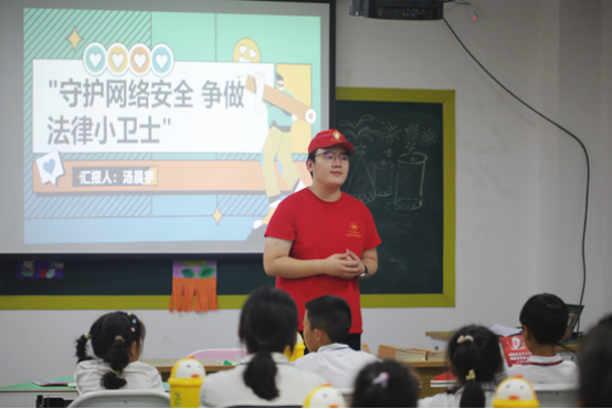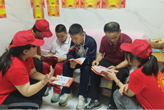 6月23日,服務隊深入茶山街道、金湖鄉等地開展豐富多彩的普法活動。在茶山街道溫馨家園,隊員們與街道工作人員攜手,走進留守兒童家中,送上精心準備的禮物,并為孩子們科普網絡安全知識。為了更好地關愛和幫助這些孩子,隊員們還建立了“一對一幫扶”機制,確保每個孩子都能得到持續地關注和幫助。在金湖鄉五合村,隊員楊逸舟、黃莉為青少年帶來了一場精彩的法律宣講,重點圍繞網絡詐騙傳授防范技巧,增強青少年的自我保護意識。