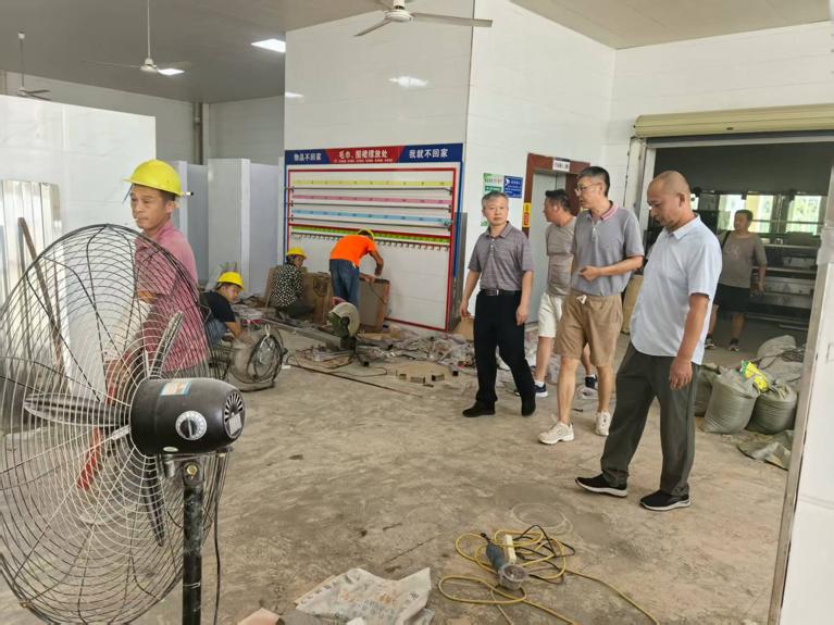 隨后,檢查組來到學生食堂維修改造項目現場。針對食堂后廚改造、地面防滑處理等改造內容,魯衛東與施工負責人深入交流,要求嚴格把控食材儲存區域的改造標準,強化施工過程中的衛生管理,保障食品安全底線,讓師生吃得放心、吃得安心。