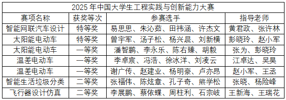 本屆大賽以“交叉融合工程創(chuàng)新育新質(zhì),立德樹人強(qiáng)國建設(shè)勇?lián)?dāng)”為主題,構(gòu)建了覆蓋新能源車、智能+、虛擬仿真三大賽道的立體競技體系。從太陽能電動車競技到企業(yè)運(yùn)營仿真決策,從飛行器仿真設(shè)計(jì)到生活垃圾智能分類,九個賽項(xiàng)直指新質(zhì)生產(chǎn)力前沿領(lǐng)域。我院學(xué)子在新能源車、智能+傳統(tǒng)賽項(xiàng)保持領(lǐng)先地位的同時,在今年首次參加的虛擬賽項(xiàng)也獲得突破,獲得特等獎1項(xiàng),二等獎1項(xiàng)。