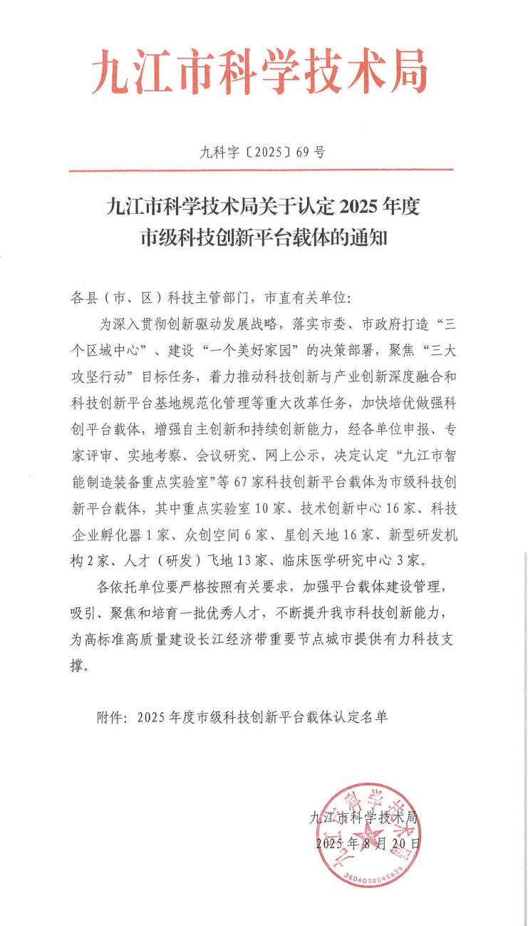 近日,九江市科學技術局公布了2025年度市級科創平臺載體認定名單,依托九江學院附屬口腔醫院申報的“九江市口腔疾病重點實驗室”成功獲批。該實驗室的設立,是附屬口腔醫院在科研平臺建設方面取得的一項重要突破。