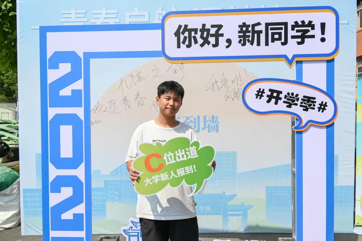 報到現場,各式各樣的歡迎背景板、打卡點,傳遞著對新生的祝福與期許,將迎新的熱烈氛圍烘托得愈發濃厚;獨特的迎新合影框靜靜矗立,等待新生留下與校園、與新伙伴的第一張合影,定格這份獨一無二的初見。