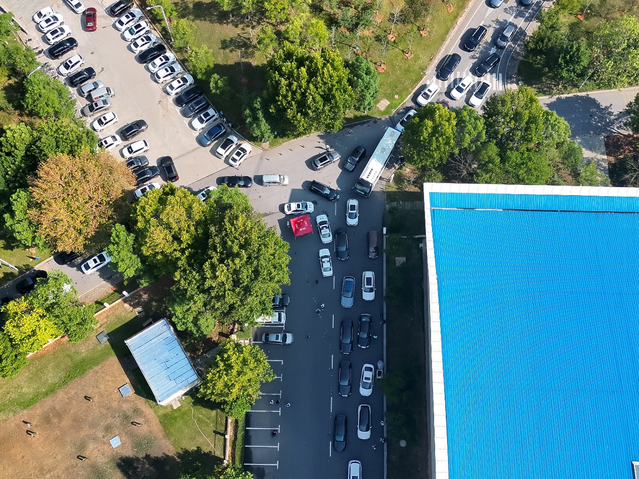 值得一提的是,今年迎新工作創新引入無人機空中AI智能巡航與交通疏導系統。借助無人機高空視角優勢,實時捕捉校園交通動態,精準識別車輛擁堵節點,并第一時間聯動地面工作人員,提供靶向性調度疏導方案,高效緩解了交通壓力,讓新生報到之路更加順暢。