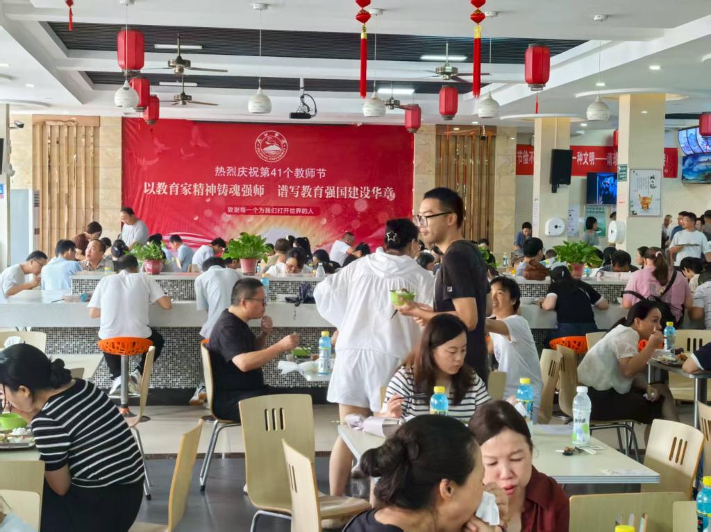 9月10日中午,九江學(xué)院教工食堂內(nèi)溫馨四溢、感動(dòng)流淌。為給老師們送上特別的節(jié)日祝福,此次活動(dòng)別出心裁地為全校教職工準(zhǔn)備了專屬“園丁餐”。這份餐食,不僅是一頓家常飯菜,更承載著學(xué)校對(duì)教職工的關(guān)懷與慰藉,希望借此慰藉老師們平日里的辛勞。與此同時(shí),清香的鮮花與爽口的飲品相伴,讓整個(gè)節(jié)日充滿了儀式感。