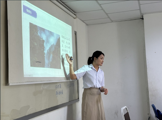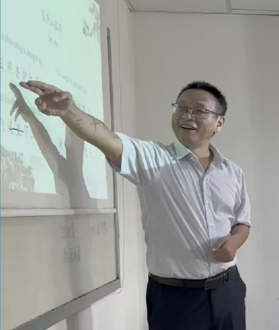 樂雷漢老師將課堂氛圍推向高潮。他以詩仙李白的《望廬山瀑布》為核心,通過聲情并茂的朗誦與細致入微的講解,引導學生逐句體會古詩的韻律和意境。在他時而平緩悠遠,時而高昂激越的語調中,“飛流直下三千尺,疑是銀河落九天”的磅礴景象仿佛近在眼前。在他的悉心指導點撥下,學生們學會了語氣的抑揚頓挫與情感的遞進,在吟誦中真切感受到中華經典詩歌的節奏與美感。