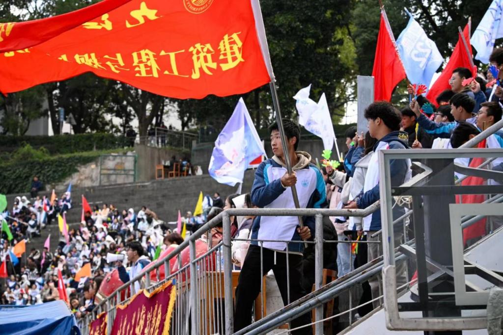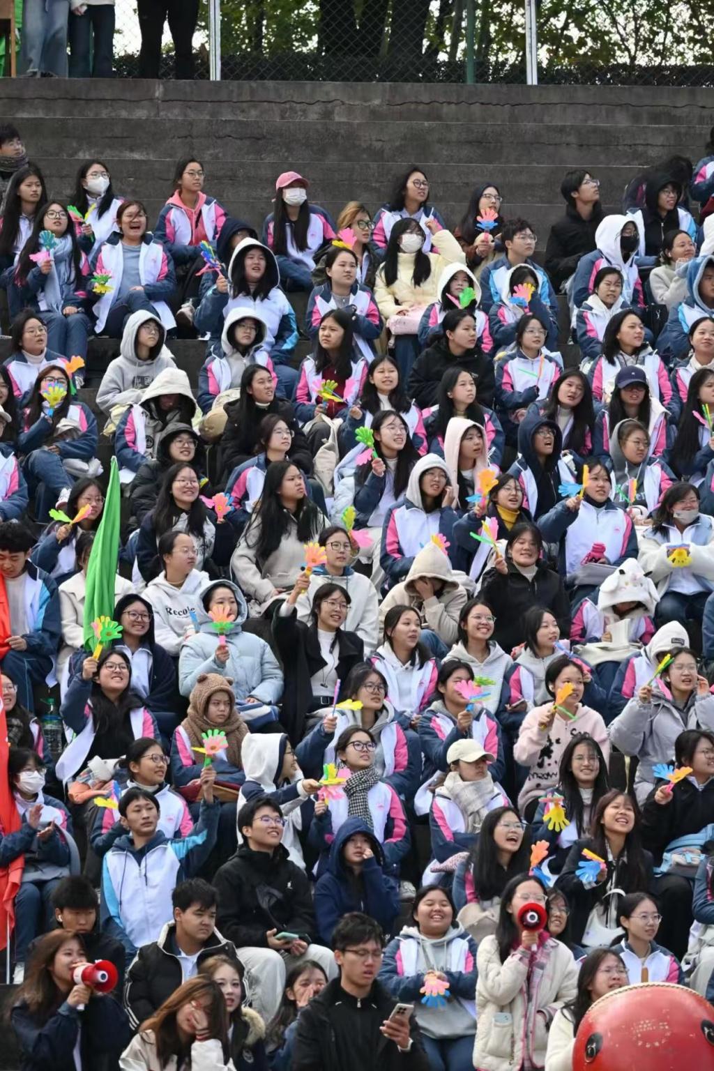 “加油!”“堅持住!”看臺上,吶喊聲此起彼伏;鑼鼓聲陣陣,點燃全場熱情。各學院拉起定制橫幅,啦啦隊揮舞院旗,同學們踮腳眺望賽道,縱使秋風習習,也吹不散大家的觀賽熱情。