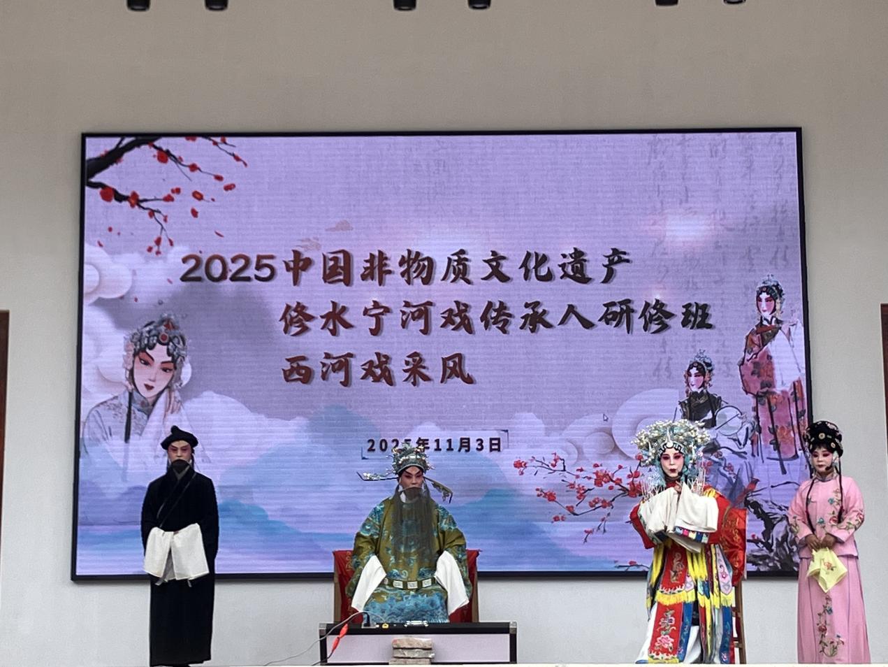 為加強修水寧河戲傳承人研修班學員對地方傳統戲曲的認識、拓寬他們的視野和提高他們的藝術鑒賞能力,11月3日,研修班師生一行來到廬山市南康古城,對國家級非遺劇種“西河戲 ”進行采風活動。