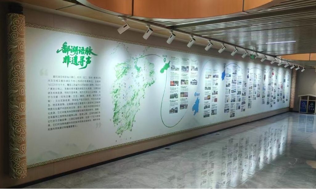 鄱陽湖語言文化展示(教育)中心是一個立足地域文化特色、融合旅游體驗與教育功能的創新型平臺。中心充分整合高校、政府與企業三方資源,以鄱陽湖流域語言文化為基礎,梳理區域語言文字發展脈絡,結合芳蘭湖景區旅游資源,開發出“芳言蘭語”系列文化產品。秉持“讓語言可看好看、讓文化可感好玩”的理念,綜合運用平面圖畫、立體浮雕、互動課堂等形式,開展語言文化展示與教育。該中心不僅搭建了高校服務地方的文化橋梁,探索了文化遺產可持續發展新路徑,也為公眾系統感知鄱陽湖文化魅力提供了重要窗口。
