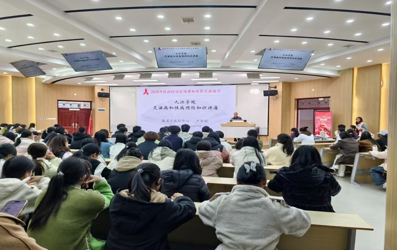 在第38個“世界艾滋病日”來臨之際,為增進在校大學生對艾滋病的科學認識,提升防艾抗艾能力,營造健康無“艾”、友善和諧的校園環境,11月26日下午,校醫院聯合濂溪區疾病預防控制中心、濂溪區人民醫院,在學校競知樓舉辦防艾知識講座,在三食堂廣場開展艾滋病防治主題現場宣傳活動。本次活動以“社會共治,守正創新,終結艾滋”為主題,吸引了大量師生的踴躍參與。